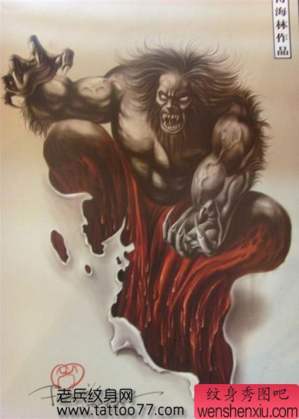 另类经典的撕皮恶魔纹身手稿