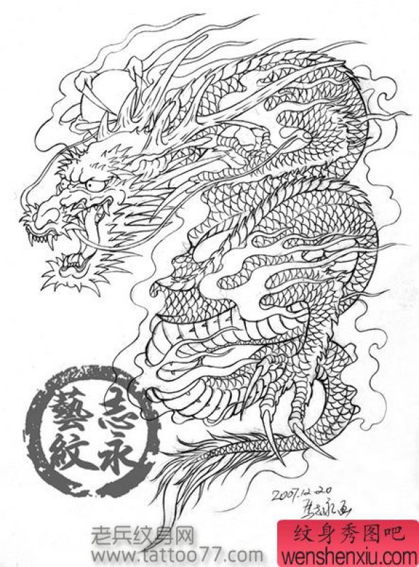 龙纹身手稿_一组老传统黑灰龙手稿纹身图案