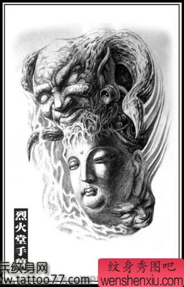 能面万媚纹身手稿_52张日式能剧面具纹身手稿图案素材欣赏