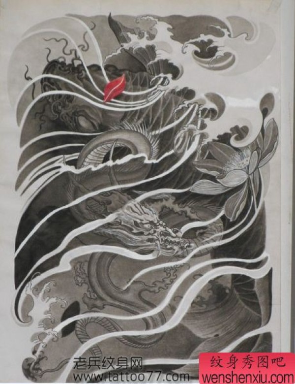 龙纹身手稿_一组老传统黑灰龙手稿纹身图案