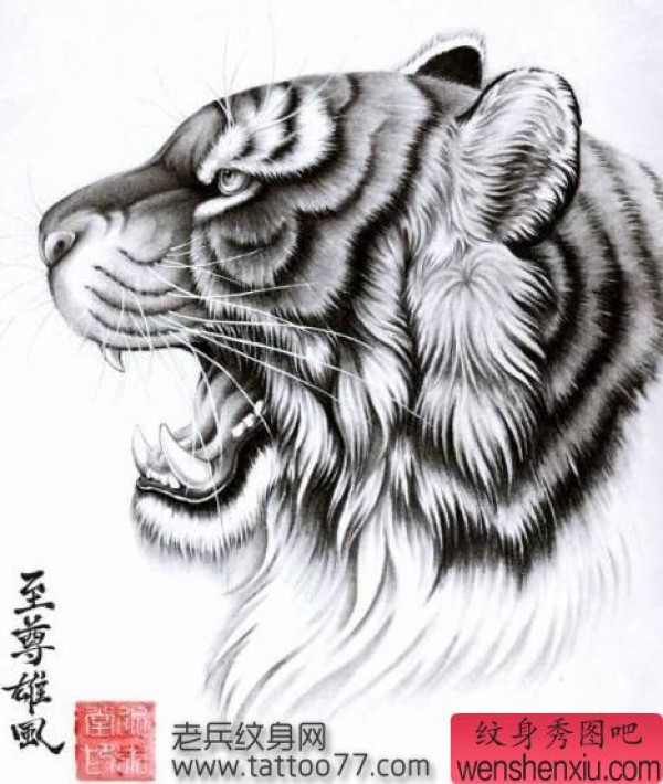 帅气的老虎虎头纹身手稿