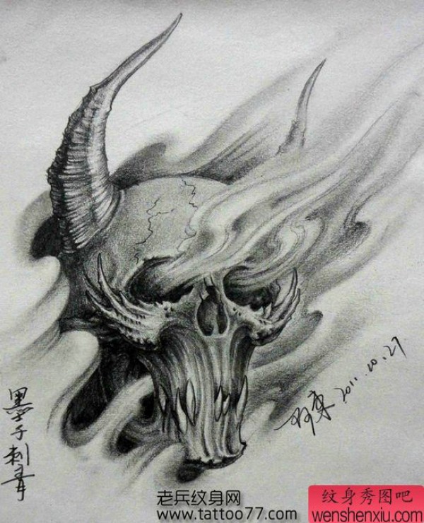 一张另类经典的骷髅纹身手稿
