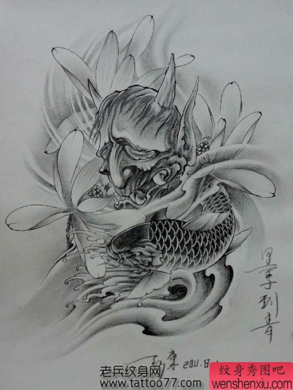 能面万媚纹身手稿_52张日式能剧面具纹身手稿图案素材欣赏