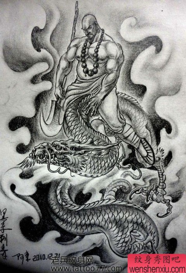 龙纹身手稿_一组老传统黑灰龙手稿纹身图案