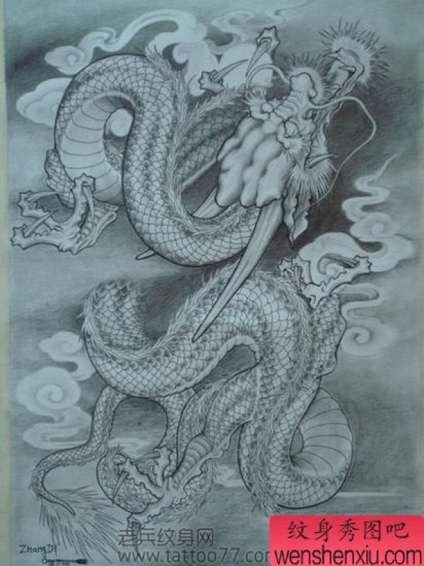 龙纹身手稿_一组老传统黑灰龙手稿纹身图案