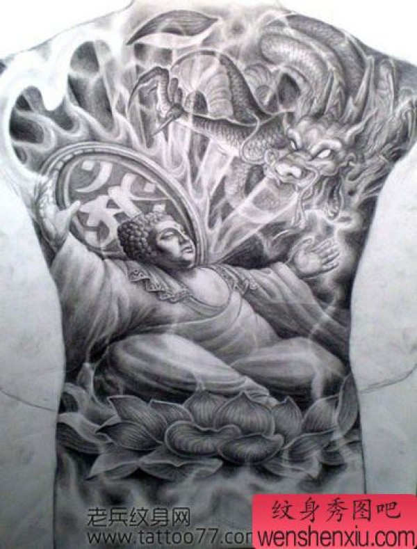 超霸气的满背佛与龙纹身手稿