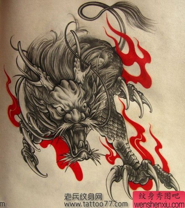 龙纹身手稿_一组老传统黑灰龙手稿纹身图案
