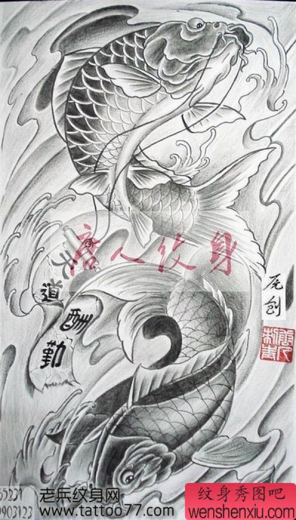双鱼座纹身手稿_45张十二星座之双鱼手稿纹身图案