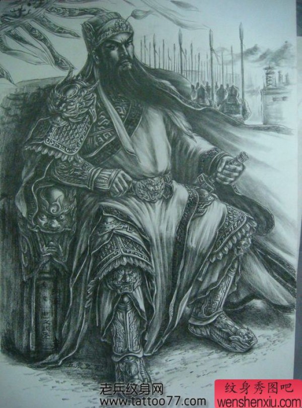 超酷的满背关公纹身手稿
