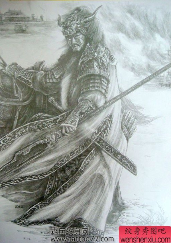 三国人物华雄纹身手稿