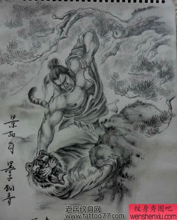 龙纹身手稿_一组老传统黑灰龙手稿纹身图案