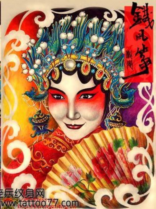 能面万媚纹身手稿_52张日式能剧面具纹身手稿图案素材欣赏