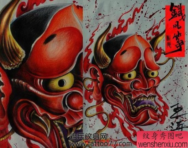 能面万媚纹身手稿_52张日式能剧面具纹身手稿图案素材欣赏