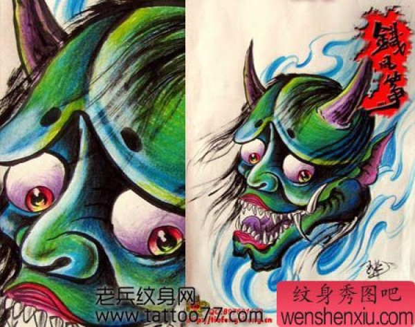 能面万媚纹身手稿_52张日式能剧面具纹身手稿图案素材欣赏