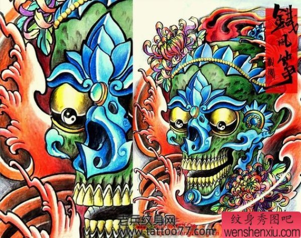 佛教嘎巴拉纹身图案