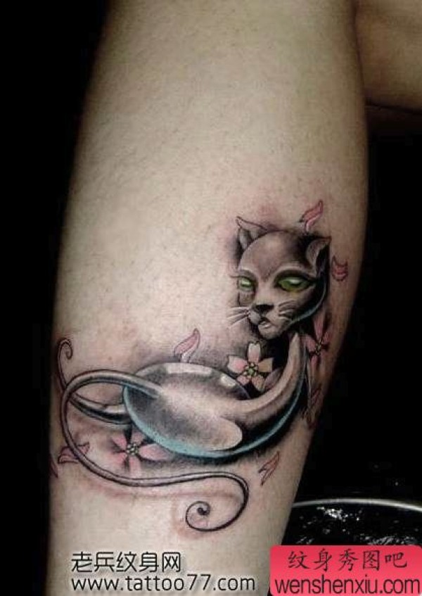 时尚可爱的腿部猫咪纹身图案