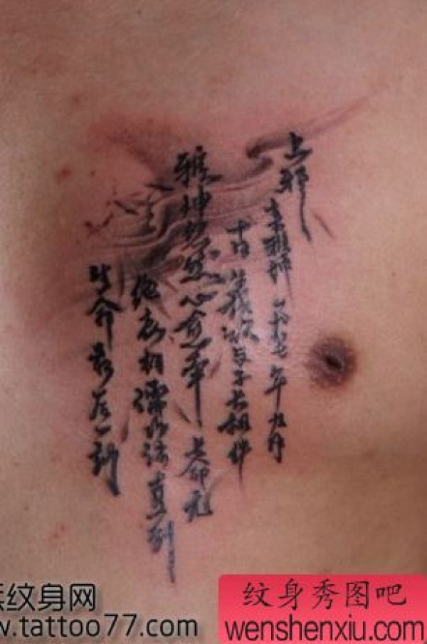 胸部中国古典汉字纹身图案