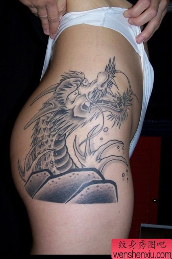 龙纹身手稿_一组老传统黑灰龙手稿纹身图案