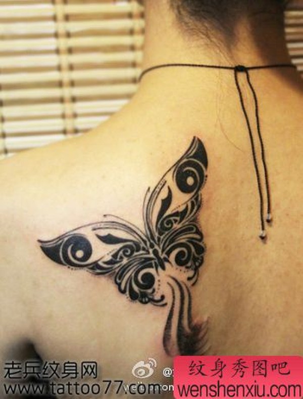 时尚的肩部图腾蝴蝶纹身图案