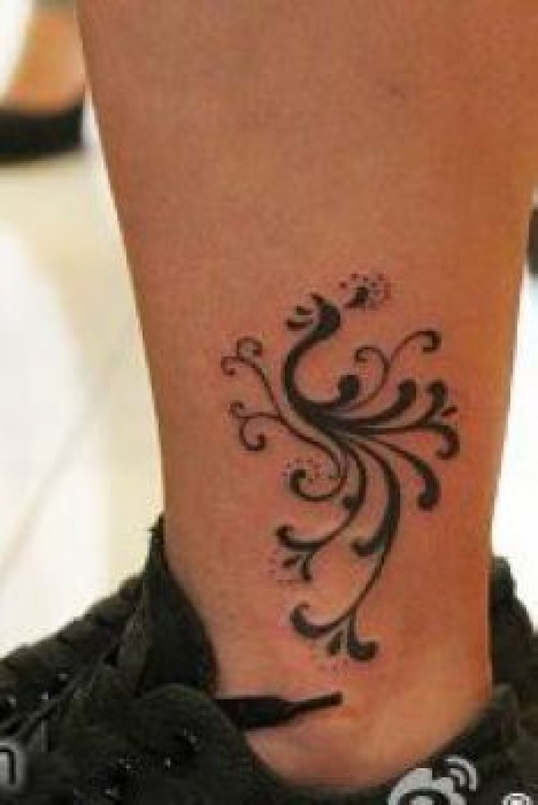 唯美的腿部图腾凤凰纹身图案