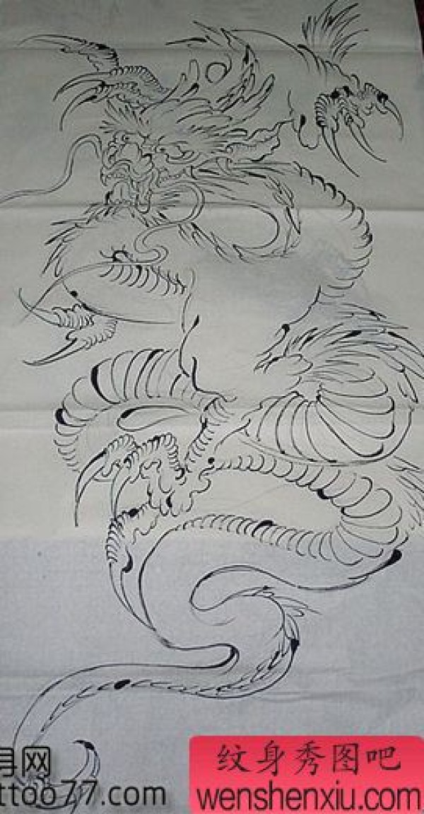 龙纹身手稿_一组老传统黑灰龙手稿纹身图案