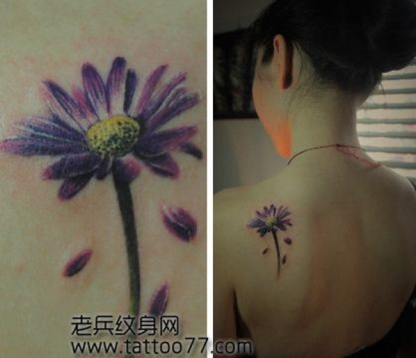 美女肩部邹菊纹身图案