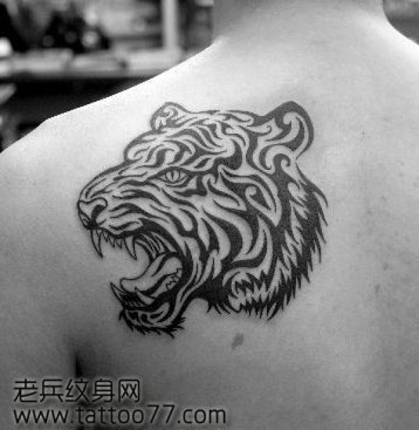 霸气的背部图腾老虎纹身图案