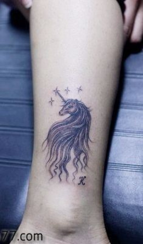 美女腿部好看的独角兽纹身图案
