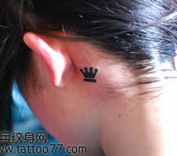 一张耳部图腾皇冠纹身图案