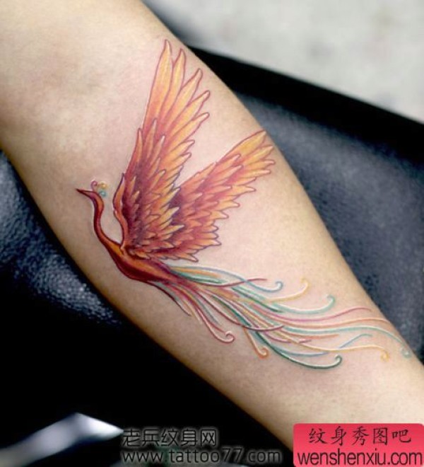 手臂小巧的凤凰纹身图案