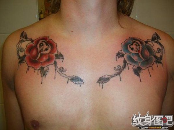 欧美玫瑰纹身 男生手臂上花朵纹身图片