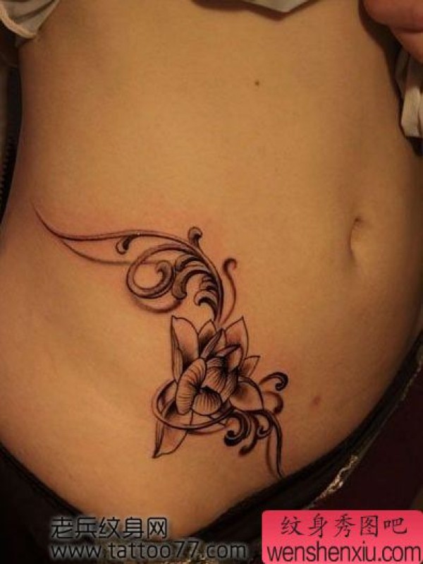 时尚性感的腹部莲花纹身图案