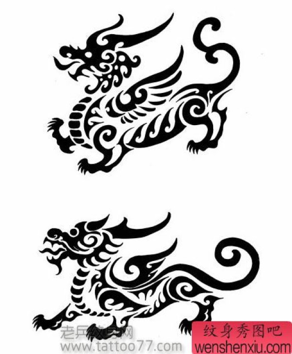 龙纹身手稿_一组老传统黑灰龙手稿纹身图案