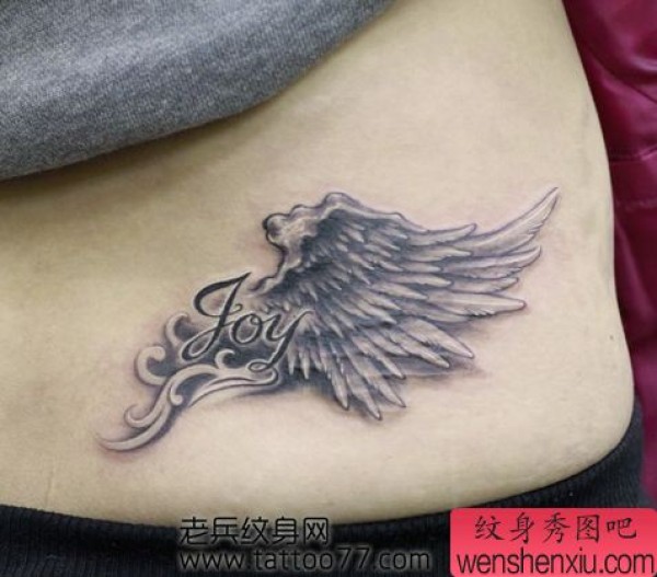 腰部时尚经典的翅膀纹身图案