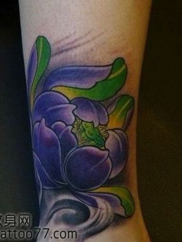 腿部艳丽的莲花纹身图案