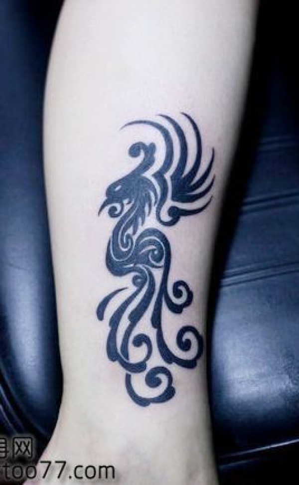 经典的腿部图腾凤凰纹身图案
