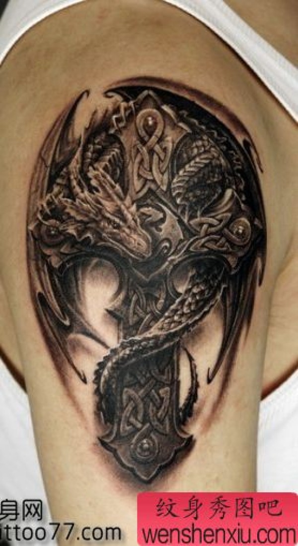 龙纹身手稿_一组老传统黑灰龙手稿纹身图案