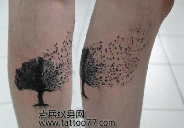 腿部时尚经典的图腾树纹身图案
