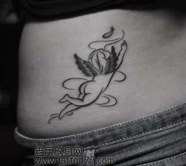 腰部唯美时尚的小天使纹身图案