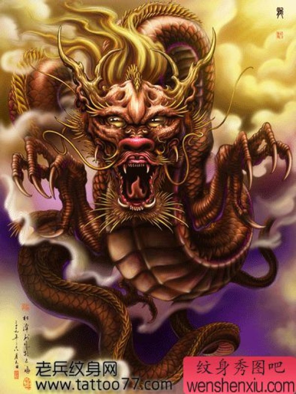 经典的东方神龙纹身手稿