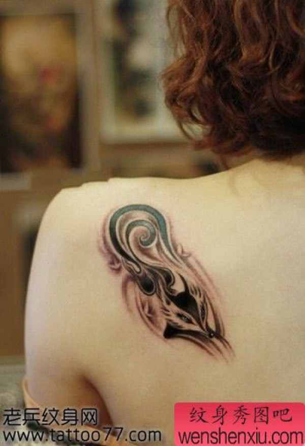 美女肩部好看的狐狸纹身图案