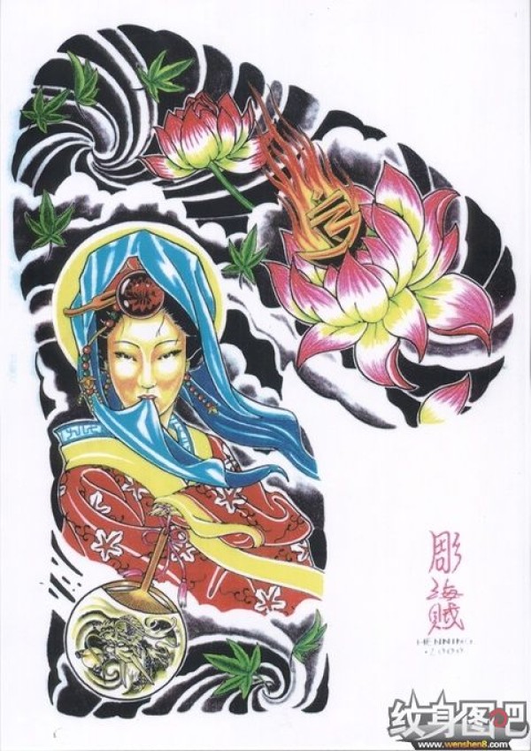 能面万媚纹身手稿_52张日式能剧面具纹身手稿图案素材欣赏