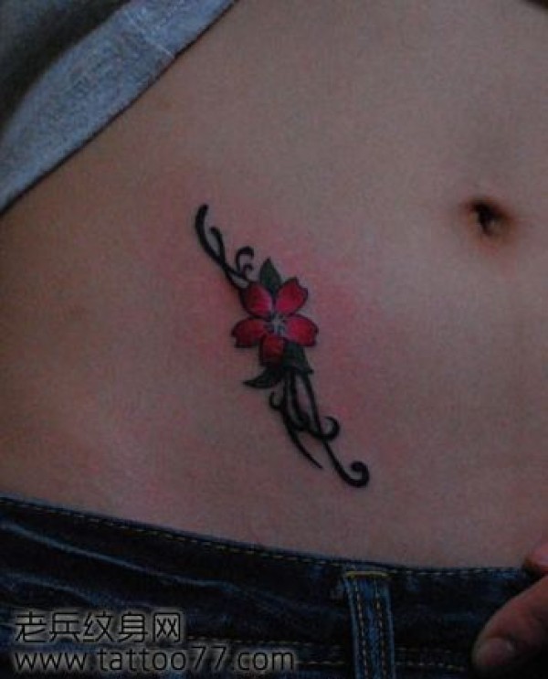 美女腹部唯美好看的樱花纹身图案