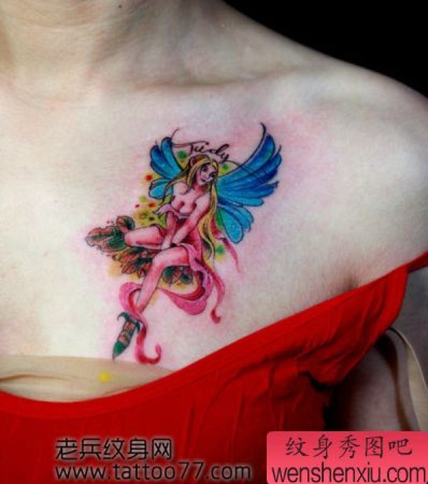 美女胸部好看的精灵纹身图案