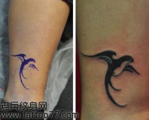腿部可爱的图腾燕子纹身图案