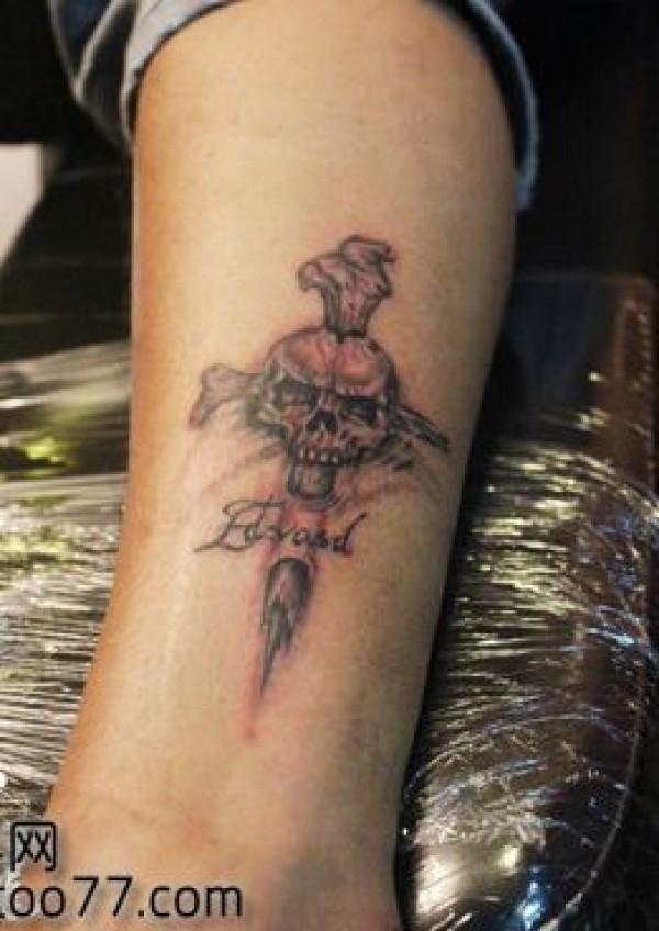 一张超酷的十字架骷髅纹身图案