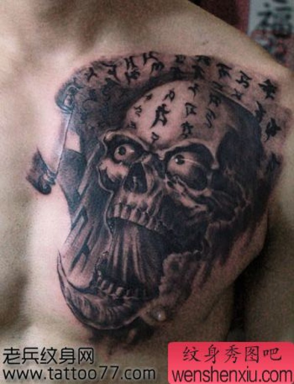 时尚霸气的胸部骷髅纹身图案