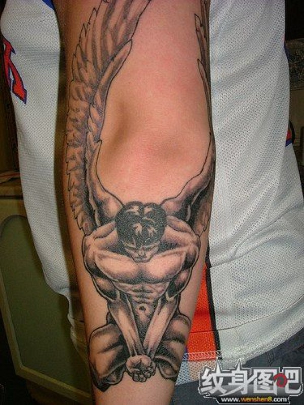 手臂上男人味十足的天使纹身