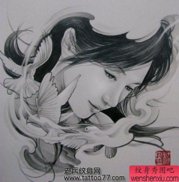 漂亮的古典美女纹身图案
