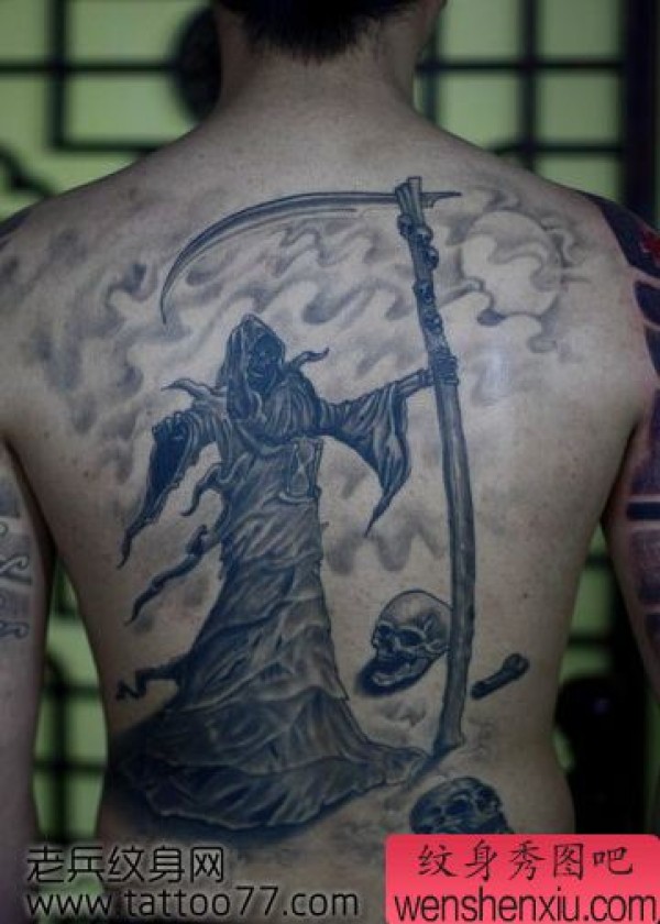 背部帅气霸气的死神纹身图案